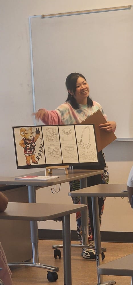 Having come prepared with powerpoints and props, students gave their pitches to Chang and three judges: Dean of Outreach and Community Partnerships Meg Hudson, Fashion Department Chair Natalie Smith, the event’s coordinator from the outreach department Cathy Chang, and Rocky the Ram.