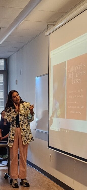 Last to present was Sara El Olich, who offered two concepts, one for Pride with an emphasis on “colorful accessories inspired by the 70s,” and a second designed with Welcome Day in mind, reminiscent of a plaid school uniform.