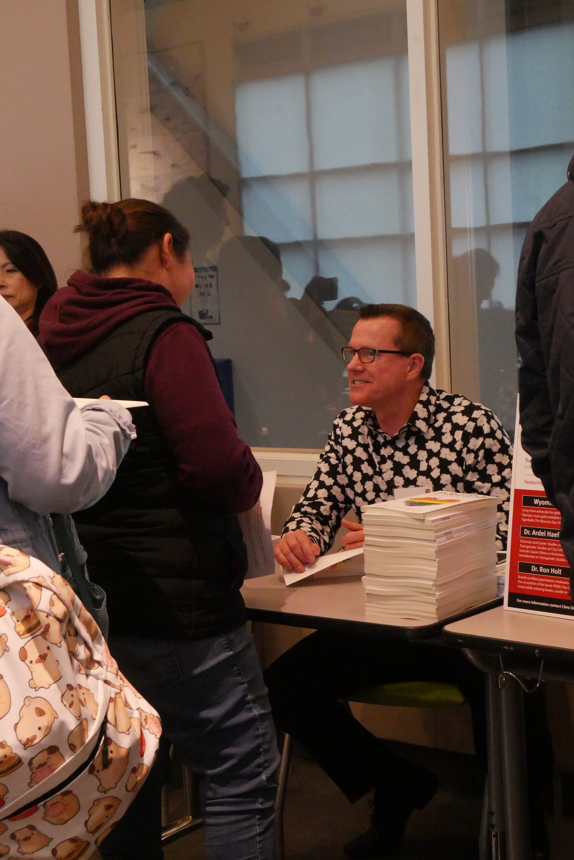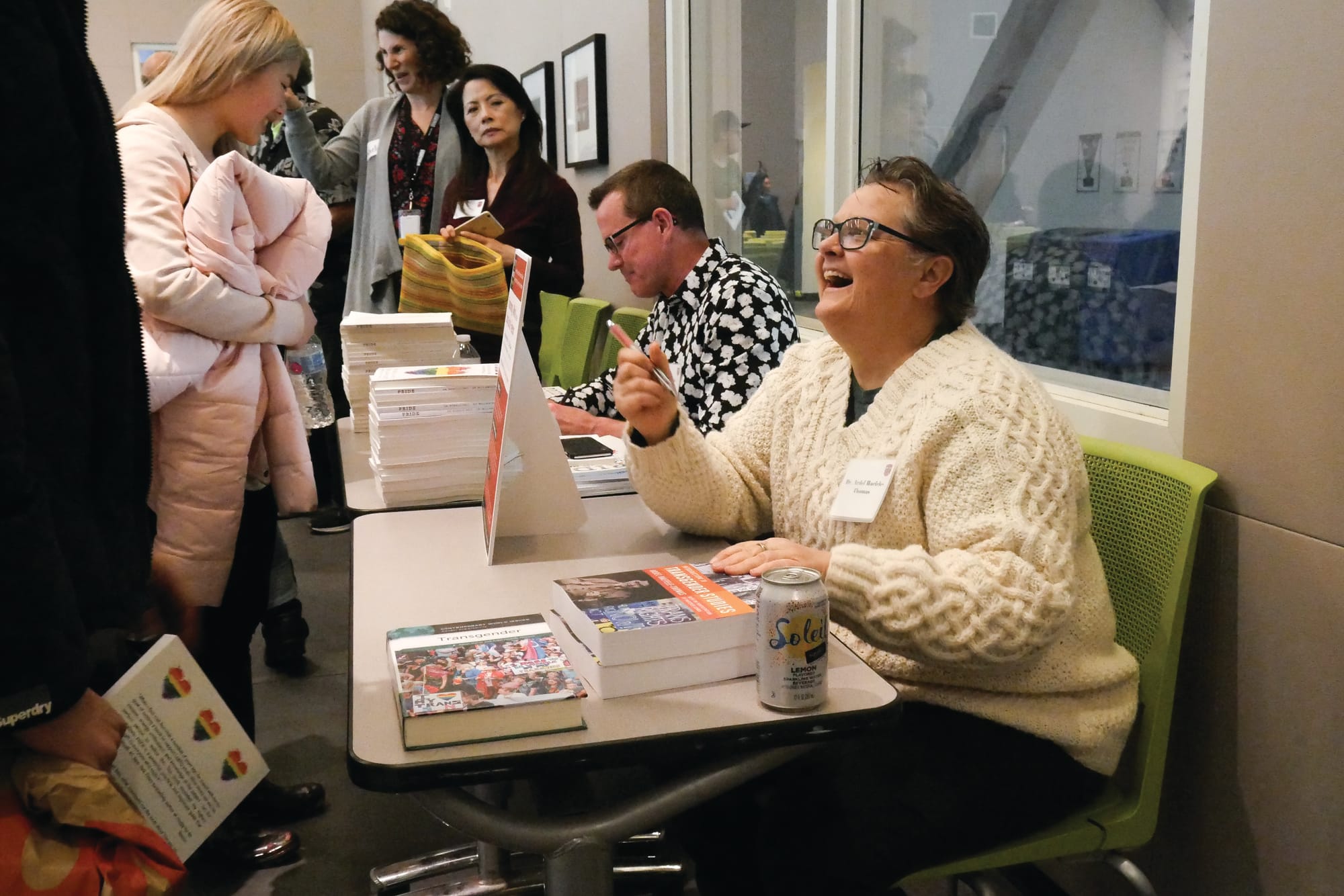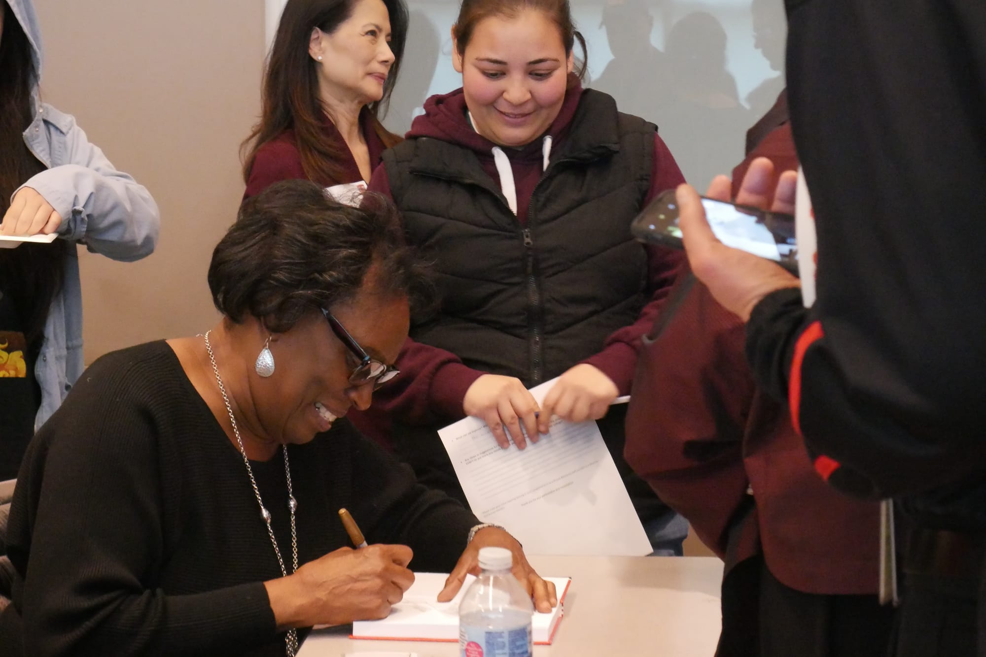 After speaking, all three stayed to sign books and talk to students and people who had come to see them.