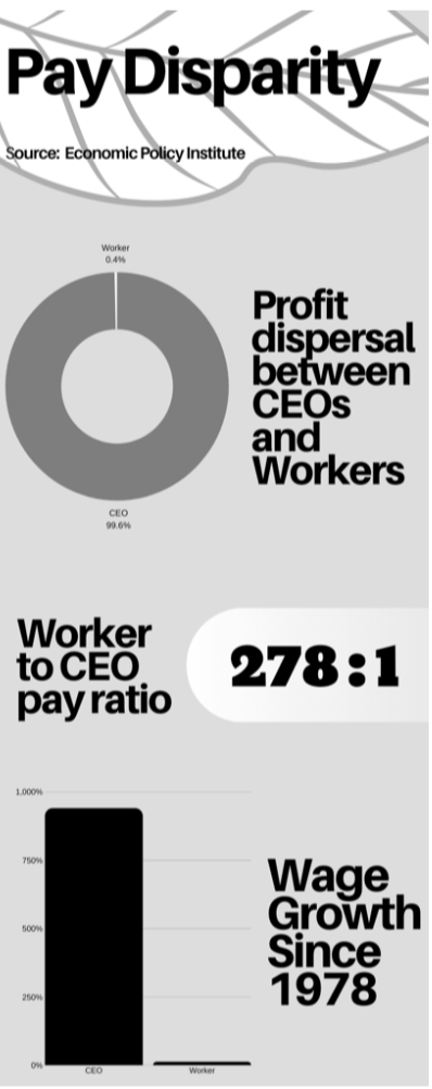 However, hierarchical workplace structures do little to achieve this dream. Pay inequality between CEOs and laborers is at an all time high in the United States. Last year, a study conducted by the Economic Policy Institute found “the CEO to (average) worker compensation ratio rose to 221 to 1 in 2018,” and “CEO compensation has grown 940% since 1978.”