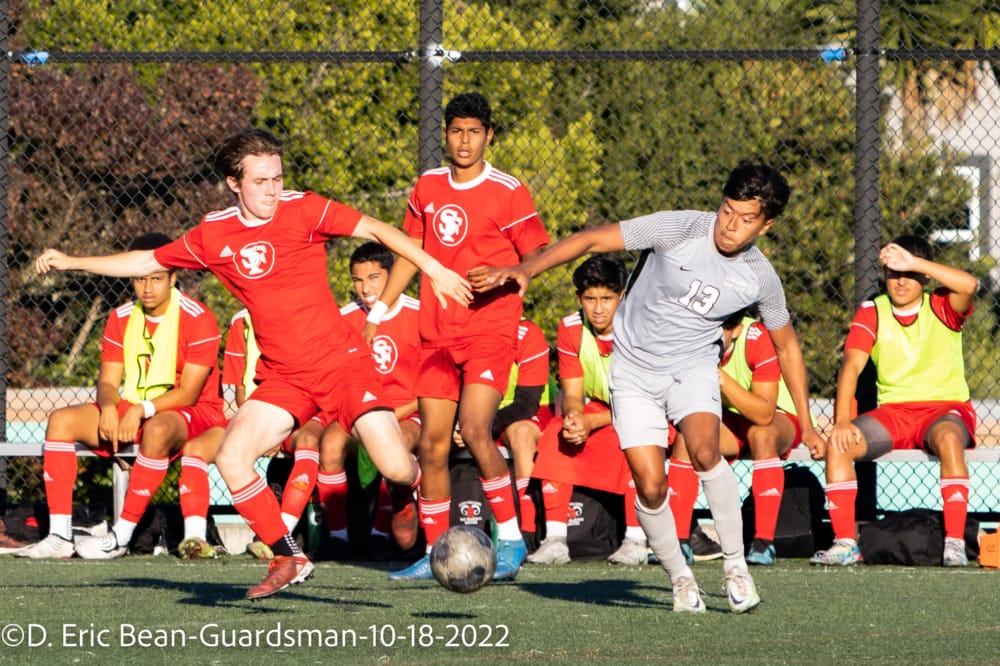 Starting the second half, the Rams’ defensive formation and middle lines were even more solid. In the 63rd minute, Rams goalkeeper Isaac Alvarez (#0) intercepted a Foothill shot-on-goal and immediately sent a cross-pass over to forward Georgi Stoyanov (#7) that resulted in a one-to-one confrontation with Foothill’s goalkeeper and a shot-on-goal for the Rams' first score and a 1-0 lead.