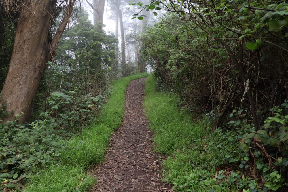 Mt. Davidson can be a different experience depending on the weather. On a super foggy day, it looks like a fairytale forest and a little eerie and foreboding. This neighborhood is known for thick fog, and it can get quite intense sometimes with more limited visibility.