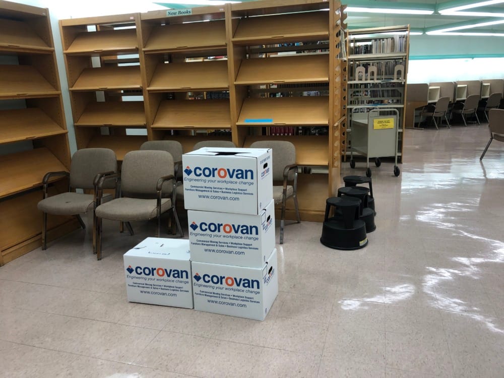 On April 19 and 20, during the few hours of allowed access, staff from the City College library, ITS and facilities departments were on site filling moving boxes with books from the library, and salvaging computer and network hardware. Both Cynthia Dewar from the Educational Technology Office and Alberto Vasquez from Facilities and Capital Planning directed questions to the chancellor's office.