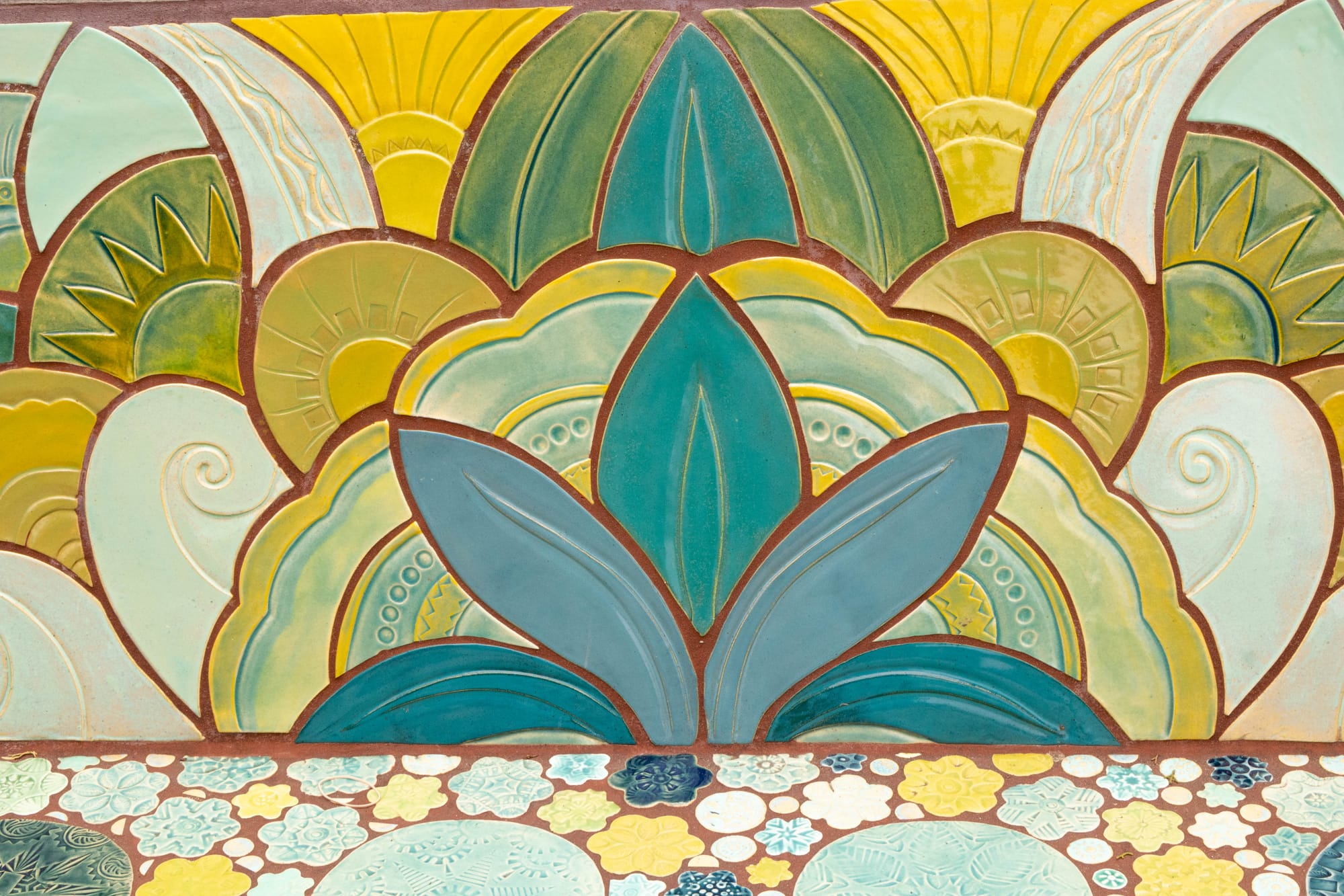 The mosaic tiles were designed by Aileen Barr, the artist behind the Instagram-famous 16th Avenue Tiled Steps in the Inner Sunset. The new design was unveiled in 2015, following a seven-year-long project. The tiles’ Beaux-Arts style, influenced by ancient Greek and Renaissance motifs, was chosen to honor the popular trend that was in style when the stairs were first built.