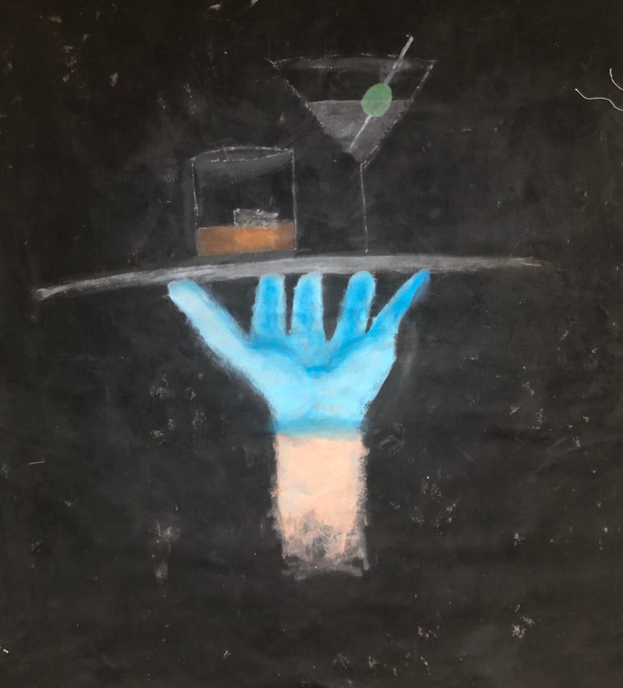 They said they felt utterly unprepared. The artist explained, “That’s really the emotion behind the void behind the hand. And then, the composition: I’m underneath and supporting, and the cocktails look weird and ominous in that space,” and added, “When I made this I was really angry and scared and I felt vulnerable. And I love this painting. I stand by it.”