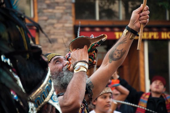 Surrounded by a circle of nearly 100 people, Mazatzin led the entire group of dancers and onlookers in a ritual to give honor in six directions.