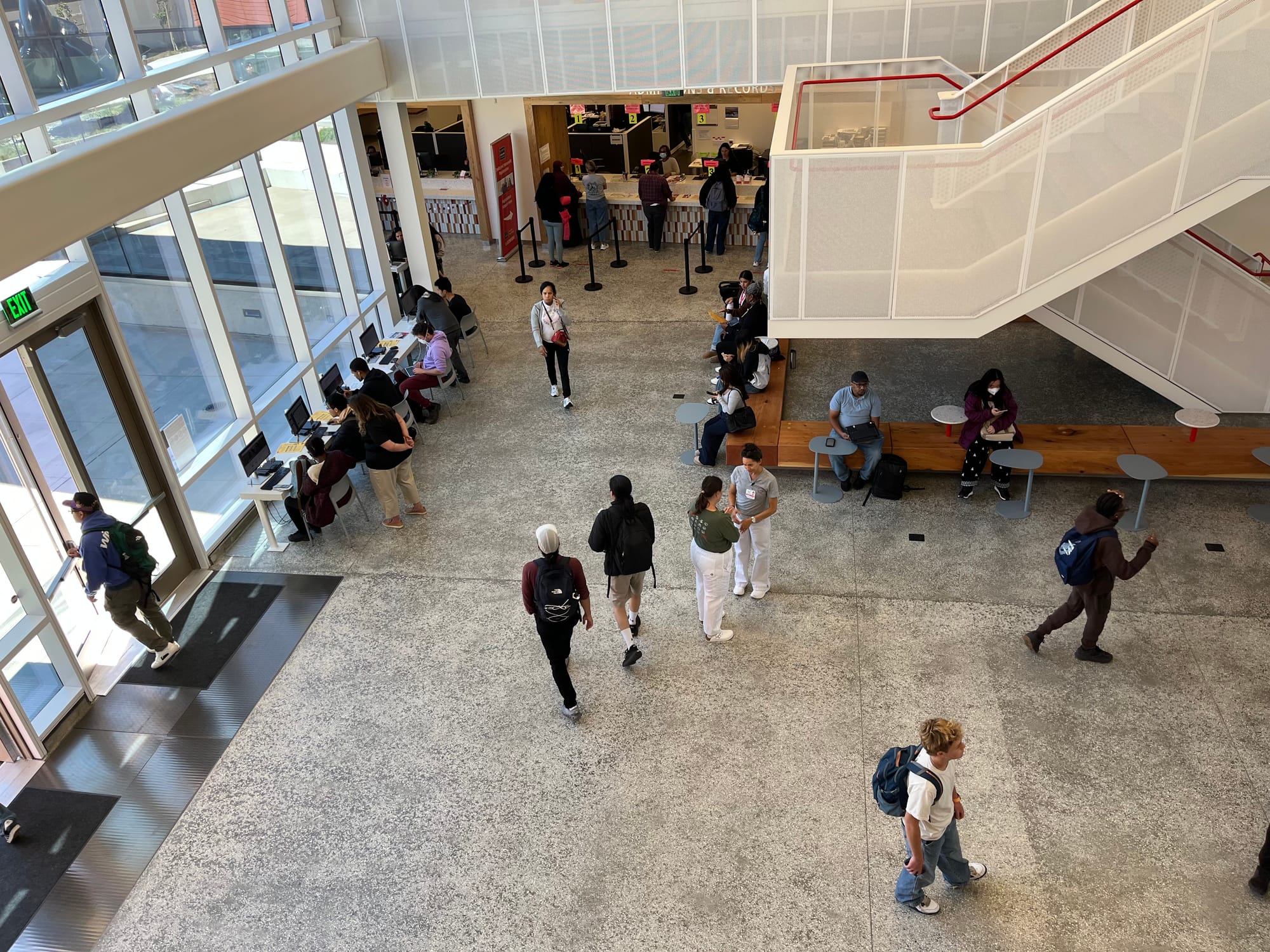 Standing at the student ambassador’s desk, Vice Student Chancellor Mallinali pointed out the service desks which line the bright central hall: Counseling, Financial Aid and Scholarships, Bursar’s Office, Admissions and Records and Assessment. Disability Services & Programs for Students is now easily accessible, just inside the SSC’s front door, rather than being tucked away in a corner of the library.