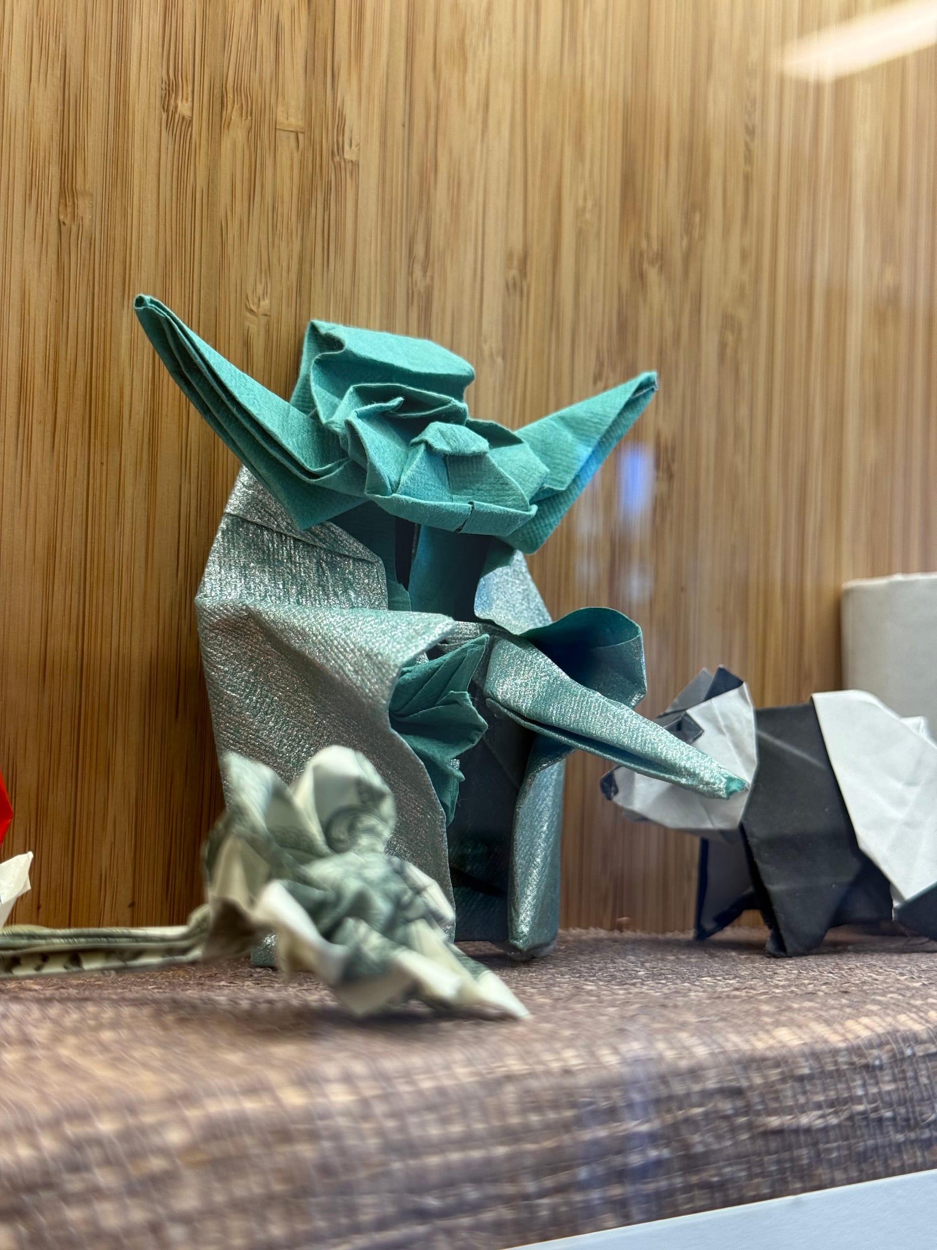 Art Department retiree Allan Firestone’s ethereal sculpture stands out against the white walls of the fourth floor. Across from it, mini origami sculptures, jewelry, and other handcrafted pieces are displayed in a glass showcase.