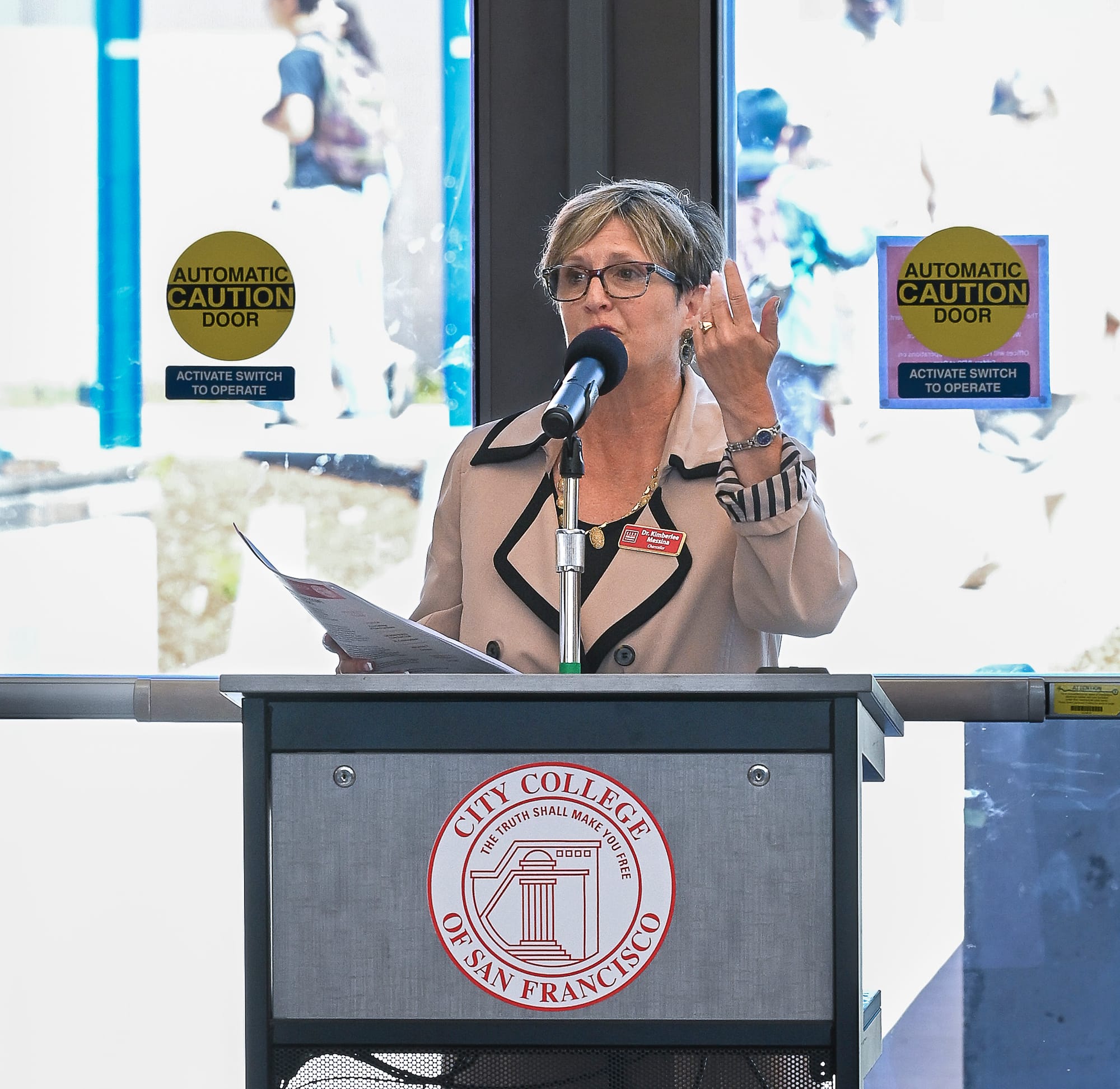 Trustees past and present heralded the Success Center’s arrival, including District 1 Supervisor Connie Chan, who once worked in Conlan Hall, the location’s previous, wilting occupant. Chan drew raucous applause when she mentioned another gateway to campus, the Free City program.