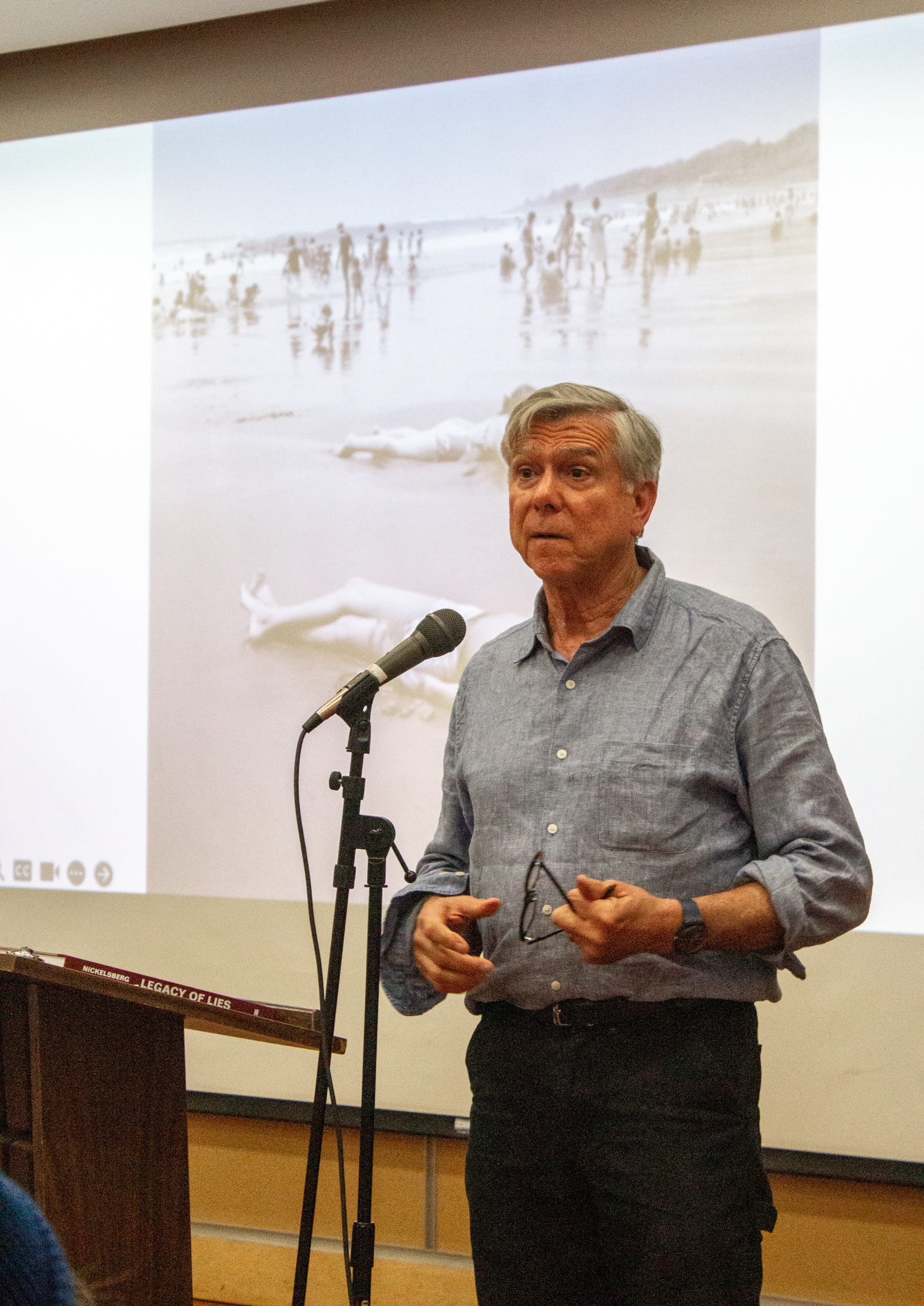 At San Francisco State University, Nickelsberg was introduced by Kim Komenich, a Pulitzer Prize-winning photojournalist.