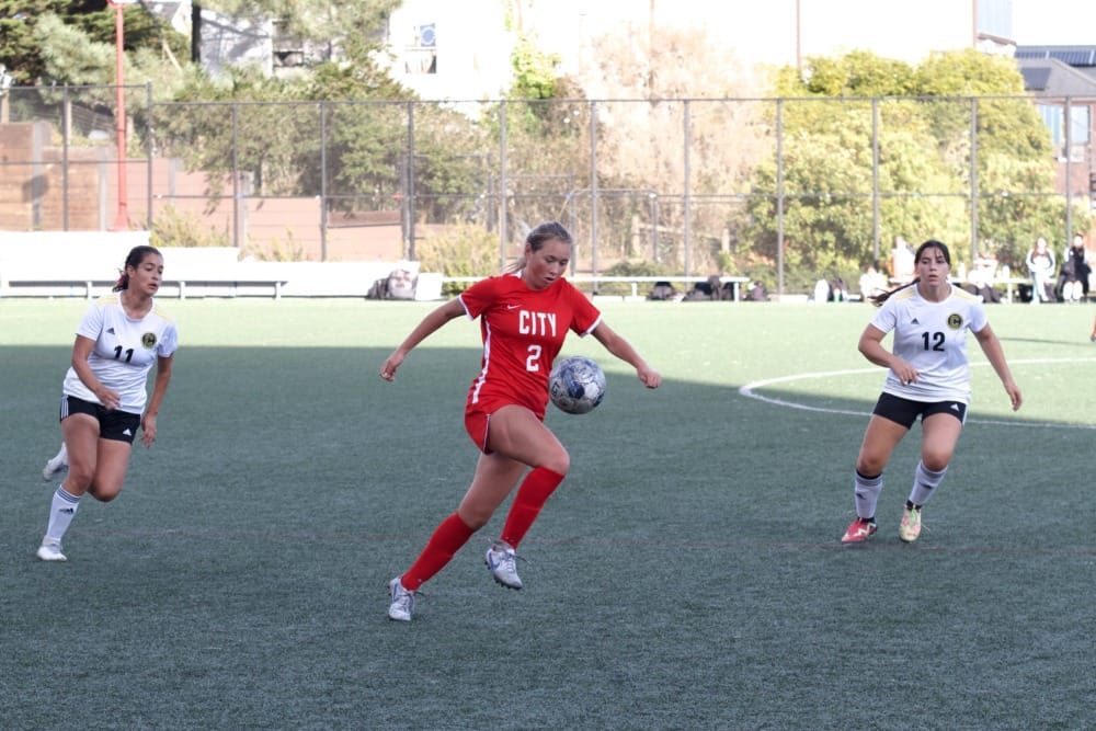 One of those rare moments of Chabot possession came just after City’s second goal, when Chabot midfielder Selena Davalos slotted the ball past City goalkeeper Paolina Molina to put them on the scoresheet 25 minutes in.