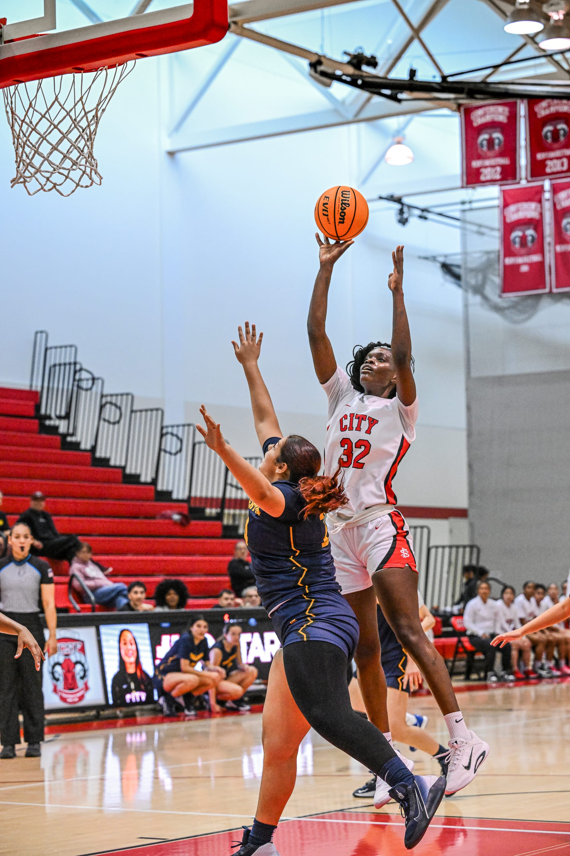 Alessandra Nelson (13) takes a shot against Fullerton College on Friday, Nov. 7, 2025, in San Francisco. Nelson had a team high 13 points to go along with her 4 steals and 2 blocked shots. City College opened their season at home against Fullerton College with decisive 69-43 win. After Fullerton scored the first 2 points of the game, City College scored the next 5 points and never looked back. (Bob Kinoshita/The Guardsman)Rams Naija Harris (20) drives past Fullerton College defender on Friday, Nov. 7, 2025, in San Francisco. (Bob Kinoshita/The Guardsman)Rams Caelan De Vera (3) takes a shot against Fullerton College on Friday, Nov. 7, 2025, in San Francisco. (Bob Kinoshita/The Guardsman)Rams June Lumumba (32) takes a shot over Fullerton College defender on Friday, Nov. 7, 2025, in San Francisco. (Bob Kinoshita/The Guardsman)Rams Alessandra Nelson (13) steals a pass from Fullerton College on Friday, Nov. 7, 2025, in San Francisco. (Bob Kinoshita/The Guardsman)