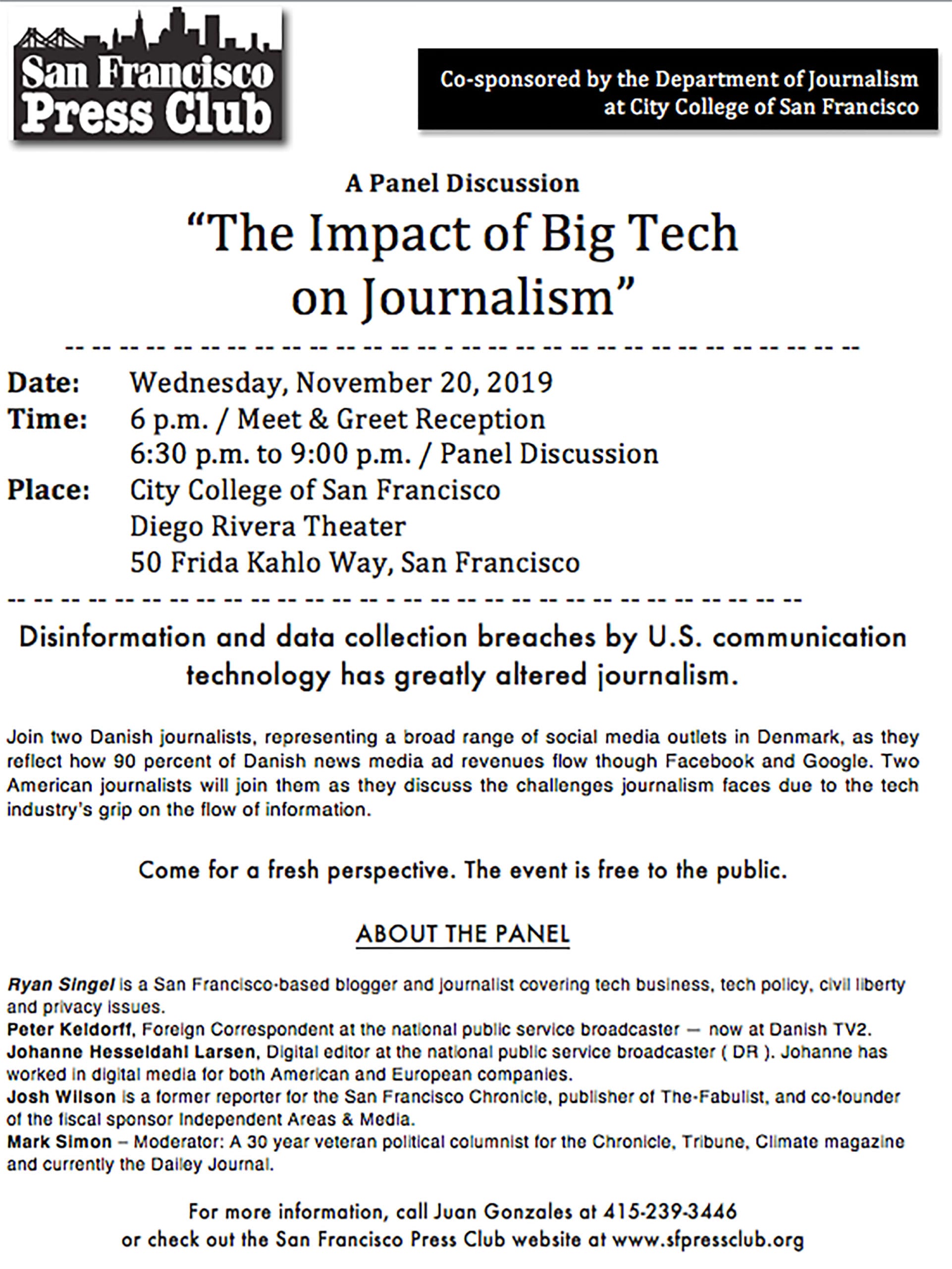 JOIN US TONIGHT (11/20/2019): A Panel Discussion, “The Impact of Big Tech on Journalism"