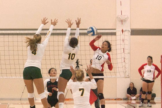 Sophomore Romona Vae controlled the net with her blocks and kills while Lee and Sophomore Nicole Yap, a transfer from San Francisco State, displayed some textbook outside hitting.