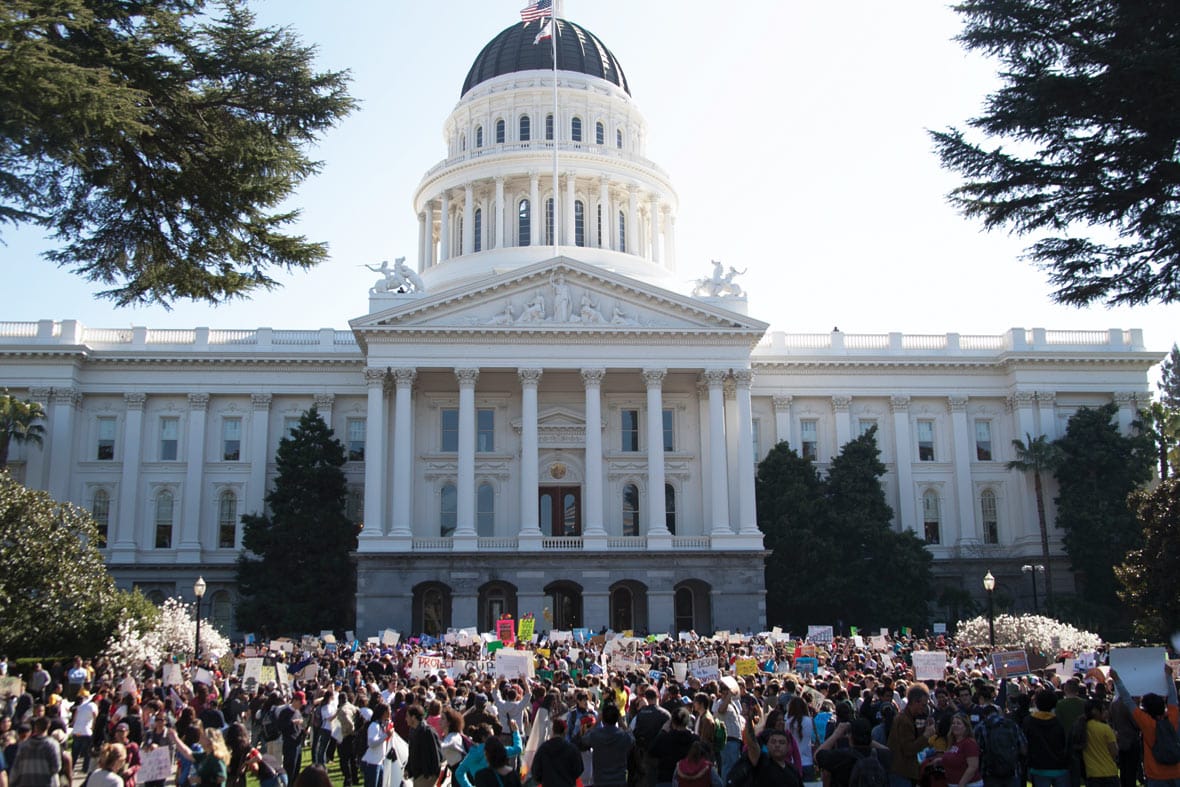 By Monday March 5, thousands were in attendance on the lawn of the state Capitol, some having marched 99 miles to Sacramento.