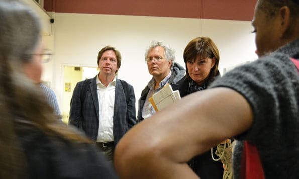 A thunderstorm raged outside of the Gough Street campus, as members of SMAC, accompanied by Hal Huntsman, a math faculty member and their advisor, as well as Sue Homer, a political science instructor, got into a heated argument about placement test policies and the process of shared governance with several English faculty members.