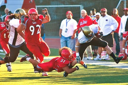 By Bontã Hill Dec. 10 In a season that had its ups and downs, the Rams didn’t envision the 2008 season to end the way it did on Dec. 6. The Rams, riding on a four game winning streak coming into the Hawaiian Punch Bowl, lost 36-14 to the San Joaquin Delta College Mustangs.