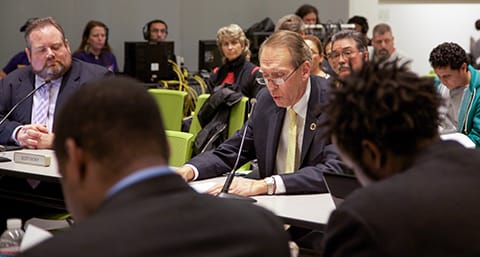 The conference room looked more like a war room scene from a movie than the site of a City College Board of Trustees meeting.