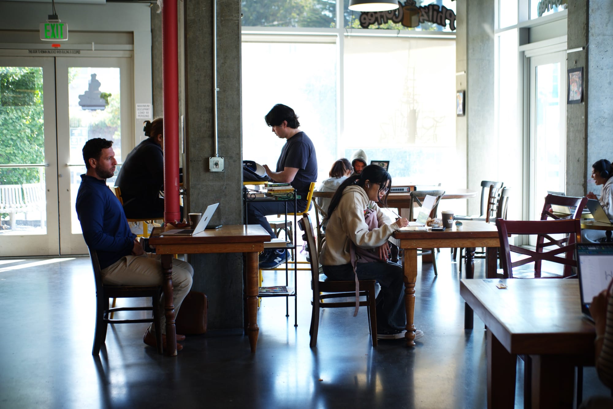 This is a cafe that encourages productivity. High ceilings and plenty of natural light make the space open and airy. A parakeet chirps occasionally over the world music playing from a floating JBL speaker. Best for long-haul solo work sessions when you want to settle in and stay productive throughout the afternoon.