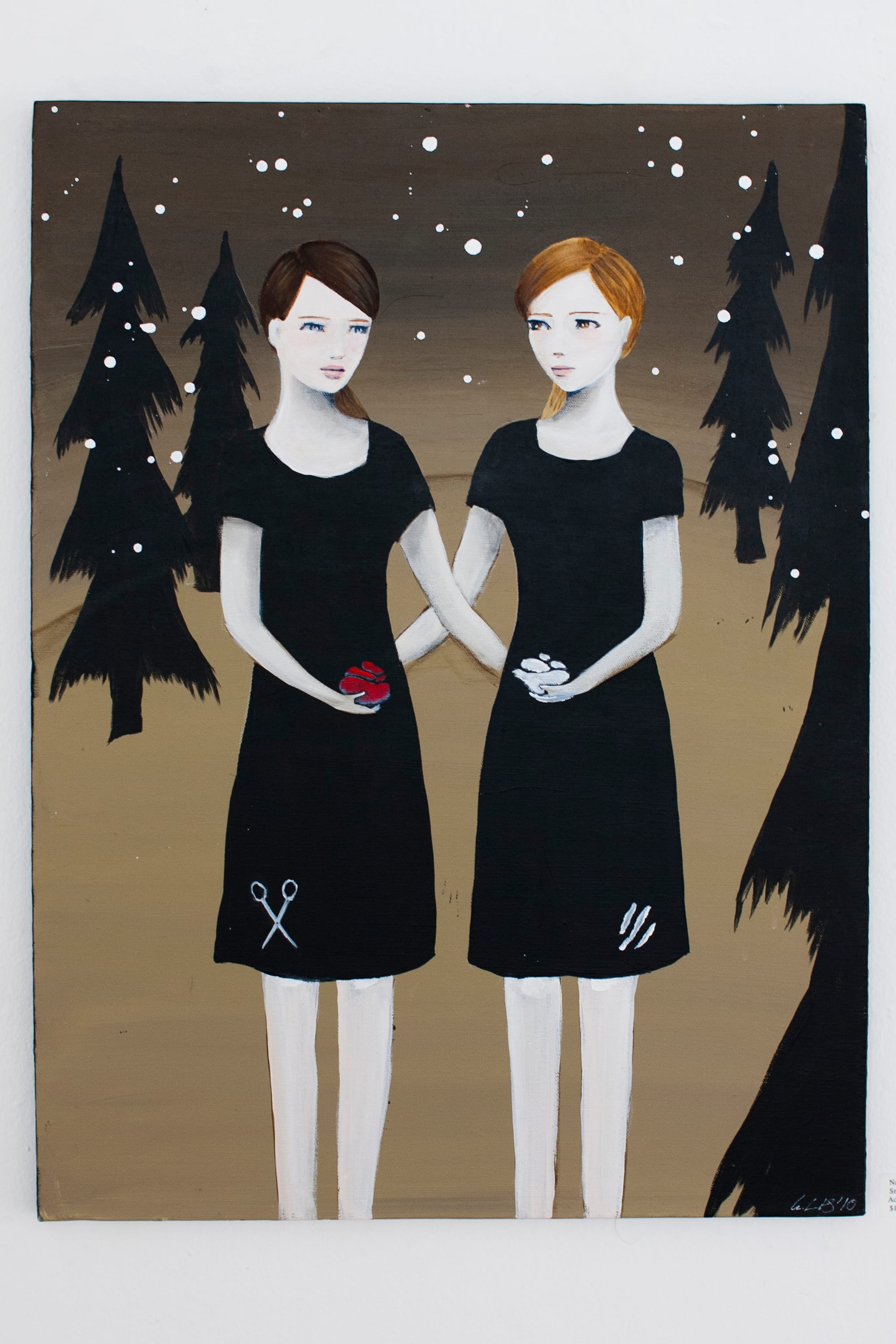 Written into the exhibit is a narrative of unpredictable darkness, nonsensicality and random evil. The viewer becomes intimate with a dark but comprehensive wonderland constructed by the artists.